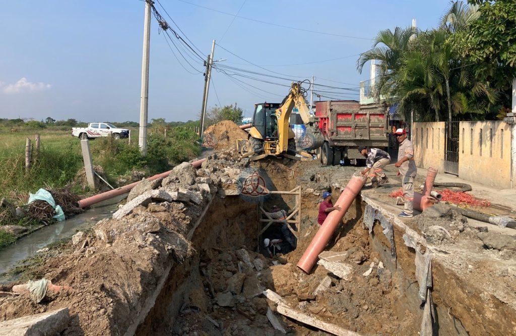 Una de esas labores se desarrolla en la calle Quetzal del Fraccionamiento Santa Elena donde se procede al cambio de tubería de 14 pulgadas que ya había cumplido con su ciclo de vida útil; los trabajos registran un avance superior al 80 por ciento.