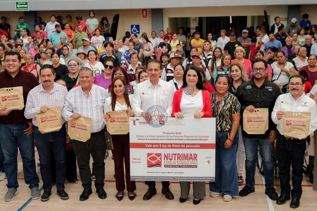 Tampico, Tamps.- Con el objetivo de fortalecer la economía familiar y garantizar el acceso a una alimentación de calidad para los sectores más vulnerables, la Presidenta Municipal de Tampico, Mónica Villarreal Anaya, encabezó este día la segunda entrega de filete de pescado, como parte del programa SS Nutrimar Común, impulsado por el Gobierno del Estado de Tamaulipas, beneficiando a mil familias tampiqueñas.