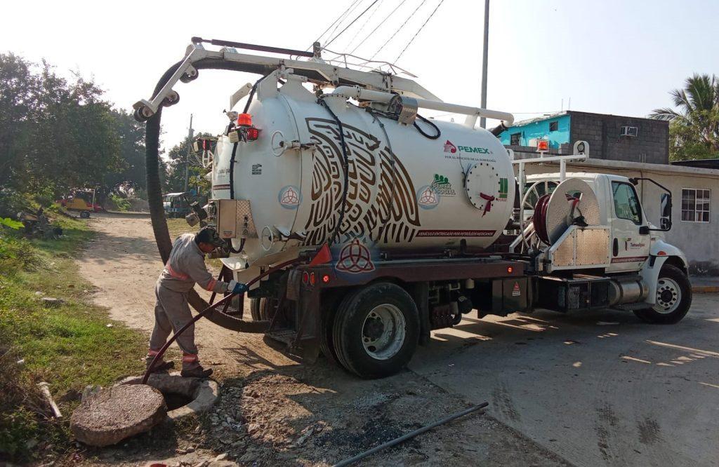 Ciudad Altamira, Tamps.- Con la finalidad de mejorar el funcionamiento de la red sanitaria y prevenir afectaciones debido a posibles escurrimientos de aguas residuales, la Comisión Municipal de Agua Potable y Alcantarillado de Altamira llevó a cabo en tiempo y forma labores de sondeo y desazolve en líneas y tuberías de drenaje en diferentes sectores de la ciudad.