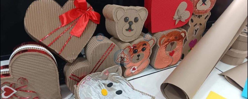 Como parte de estas actividades, se lleva a cabo el taller de elaboración de cajitas para regalo y globos burbuja, una opción práctica y accesible que permite a las participantes aprender nuevas habilidades, generar ingresos y prepararse para fechas especiales como el Día del Amor y la Amistad.