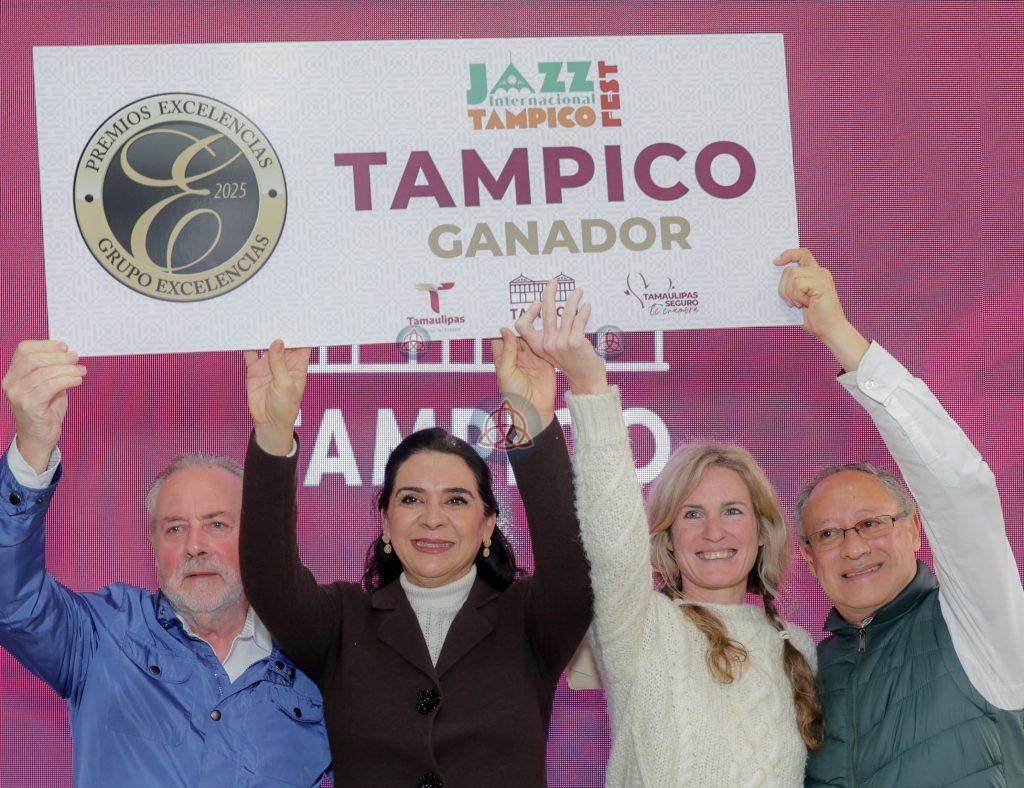 Tampico, Tamps.- Por segundo año consecutivo, el municipio de Tampico obtuvo un reconocimiento internacional por el desarrollo de proyectos turísticos, en el marco de los Premios Excelencia 2025, celebrados en Madrid, España, donde fue galardonado por la realización del Festival Internacional de Jazz Tampico.