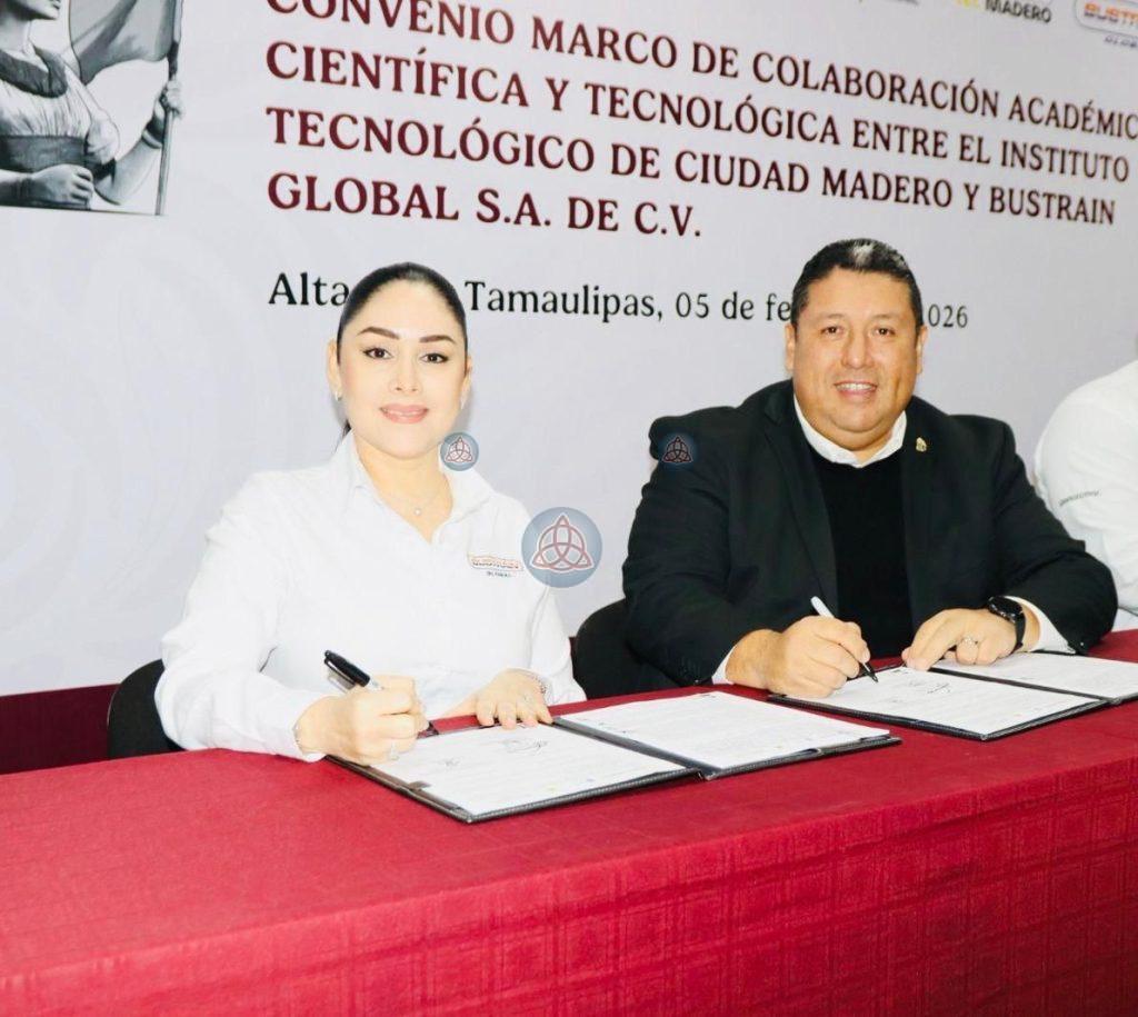 Ciudad Madero, Tamps.– El Instituto Tecnológico de Ciudad Madero llevó a cabo la firma de un convenio de colaboración con la empresa Bustrain Global, con el propósito de fortalecer la vinculación institucional y generar mayores oportunidades de desarrollo académico y profesional para su comunidad estudiantil.