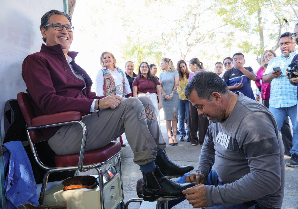 Al finalizar el evento, González Robledo convivió con los integrantes del sindicato y en un gesto de cercanía y en reconocimiento a su labor, se boleó los zapatos con uno de los aseadores beneficiados, reafirmando su compromiso de trabajar cerca de los maderenses.