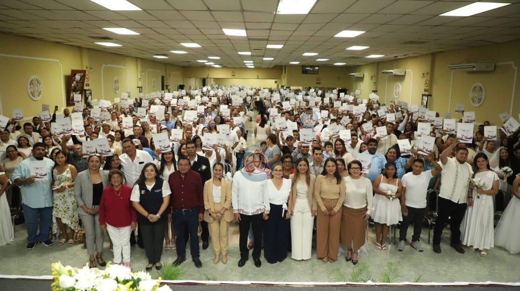 La ceremonia se realizó en el Salón Verde del Sindicato Petrolero Sección 3, donde el alcalde Armando Martínez Manríquez, acompañado por la presidenta del Sistema DIF municipal, Rossy Luque de Martínez, encabezó el acto bajo el lema “Sí, para toda la vida”.