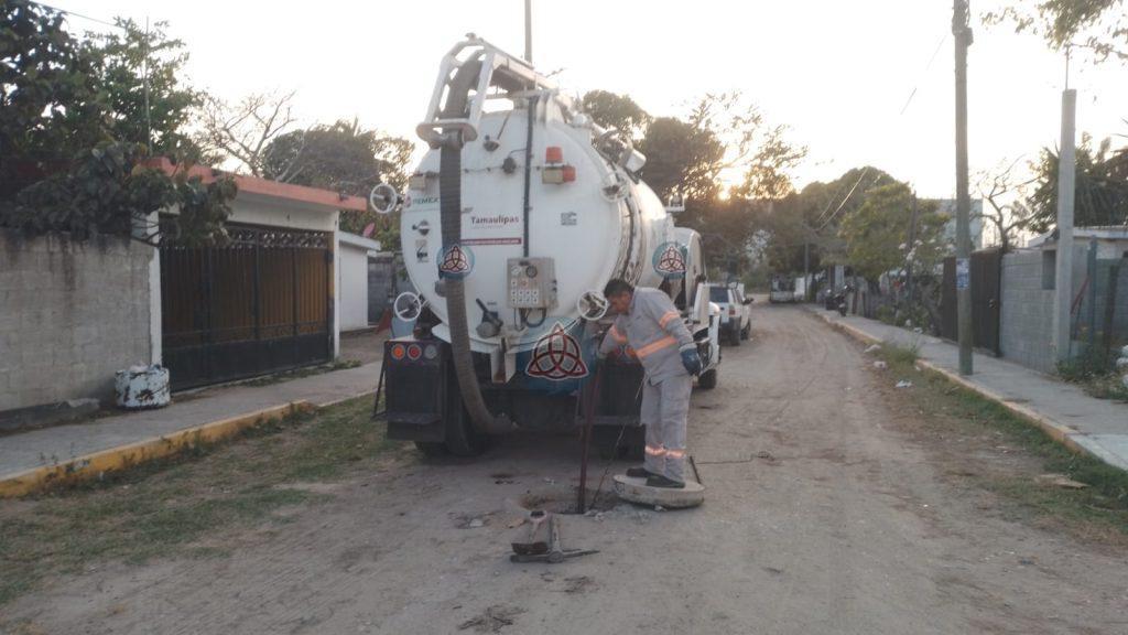 Lleva a cabo el organismo labores de sondeo y desazolve de líneas generales y tuberías de drenaje en las colonias Santa Ana, Los Fundadores, Américo Villarreal, y en la Zona Centro