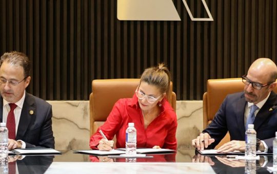 Secretaria de Economía, Ninfa Cantú Deándar y presidente de la Confederación de Agencias de Agentes Aduanales, Miguel Cos Nesbitt firman...