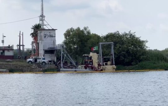 Luego del hundimiento de una draga en la laguna de Champayán; verificaciones las hacen CONAGUA y CIDIPORT Altamira, Tamps.- El...