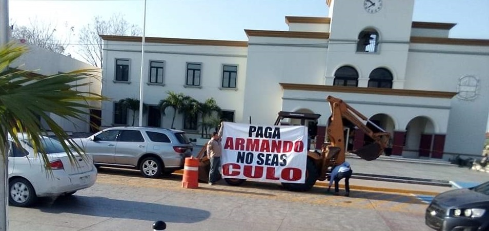 Por Agustín Peña Cruz | Noticiaspc.com.mx Altamira, Tamps.- Una retroexcavadora, un mensaje con la leyenda “Paga Armando, no seas culo”...