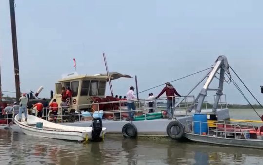 Altamira, Tamps. - El pasado viernes se hicieron pruebas de funcionamiento a la draga "Laguna de Champayán", verificando los motores...