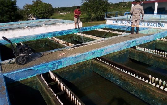 Personal del organismo realiza labores de mantenimiento y limpieza de las cisternas, filtros, y de malla perimetral, para garantizar calidad...