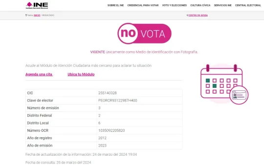 La clave de elector de Carlos Peña, aparece en la Lista Nominal de Electores, con la leyenda 'NO VOTA'. Por...